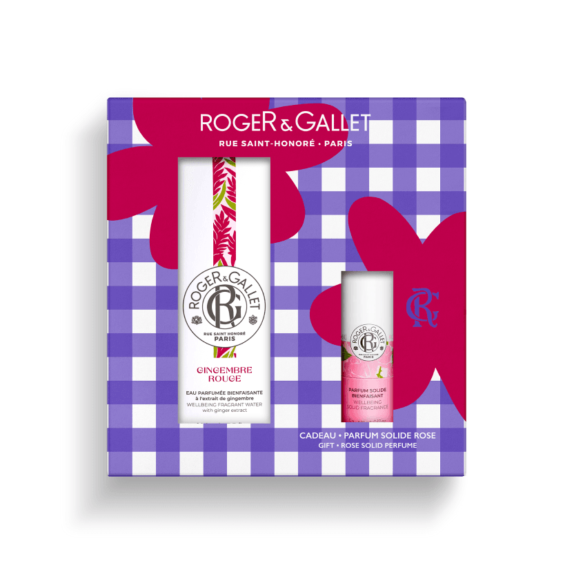 Ce coffret réunit l’Eau Parfumée Gingembre Rouge qui nous fait craquer, et le parfum solide Rose pour un duo floral tendre et poudré !